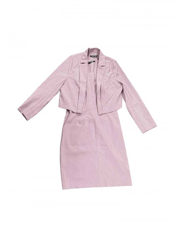 【期間限定10%OFF】Allegra K レディース ビジネスドレススーツセット ノースリーブ ボディコンドレス 長袖 クロップドブレザー 仕事着 グレーピンクM