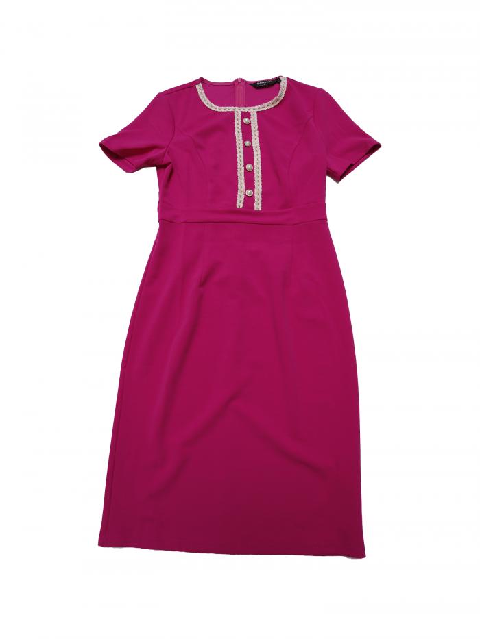 Allegra K ワンピース ボディコン ドレス ワーク ビジネス 半袖 ラウンドネック カラーブロック レディース ホットピンク S