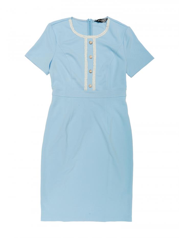Allegra K ワンピース ボディコン ドレス ワーク ビジネス 半袖 ラウンドネック カラーブロック レディース スカイブルー L