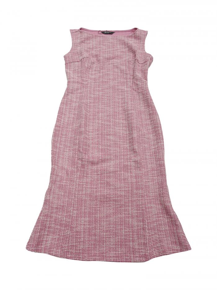 【期間限定10%OFF】Allegra K カジュアルワンピース 夏用 ツイードドレス ノースリーブ エレガント チェック柄 ボディコンドレス スリム レディース ピンク L
