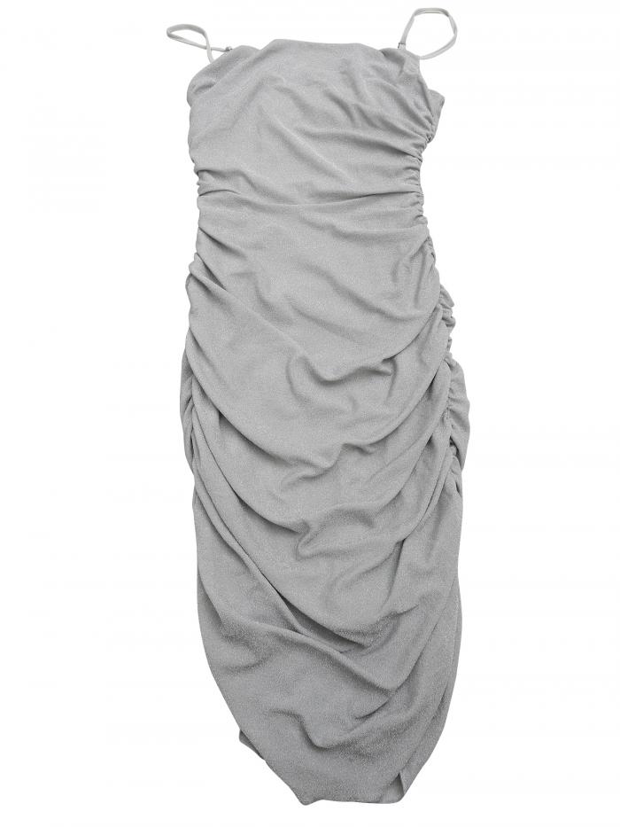 Allegra K ミニドレス ボディコン ドレス スパゲッティストラップ シャーリング パーティーレ ディース シルバー XS