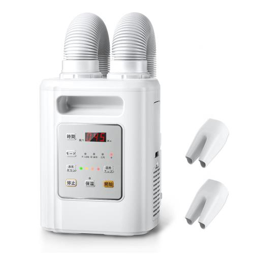 ・[1000Wハイパワーのツインノズル多機能布団乾燥機] オールシーズン使える布団乾燥機で、マットレスと布団の間に直接差し込むだけで、温風を送ることができます。 布団の乾燥や加熱だけでなく、春の花粉の季節、 夏の梅雨シーズン、 秋の台風シーズン、 冬の厳冬期にも適します。 衣類乾燥、靴乾燥、タンスの消臭・除湿、ダニ対策などにも使用できます。・[シングル・ダブルノズル自由切替] シングル・ダブルノズルを自由に使い分けられる布団乾燥機です。 布団2セットと靴2足を同時に乾燥させることができます。 また、シングルノズルを使用することで、より集中した乾燥&加熱パワーと高速加熱が可能です。 騒音が小さくなり、より快適で暖かなお家を実現します。・[簡単操作/わずか3ステップ/10秒で温風を出力]布団乾燥機の操作は簡単で、3ステップで正常に乾燥開始、選べる4つの自動モード、冬モード:高温風を60分。 夏モード:高温風60分-送風(室温..
