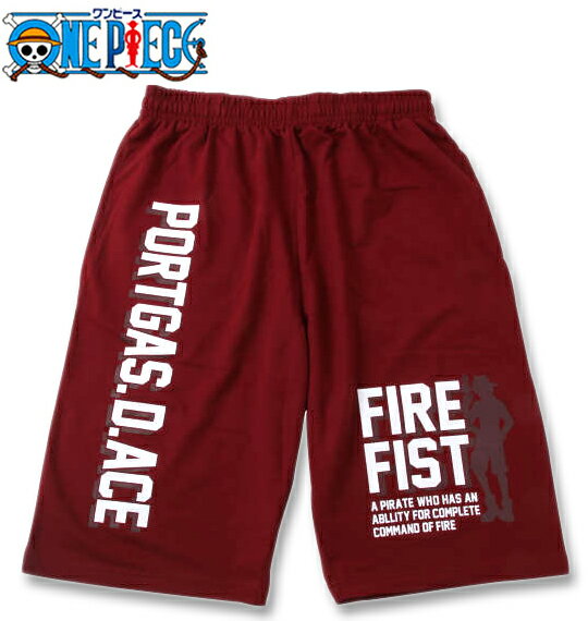 マリンフォード頂上決戦で涙を流したエースファン必見。大人気漫画「ONE PIECE」で最強の海賊団として知られる「白ひげ海賊団」。そんな白ひげ海賊団で二番隊隊長をつとめた「ポートガス・D・エース」がプリントされたハーフパンツ。炎を操るメラメラの実の能力者で「火拳のエース」という異名で知られるエース。左裾にはエースのシルエットとともに、火拳(FIRE FIST)という文字がプリントされファンにはたまらない一本に仕上がっています。肌触りのよいミニ裏毛素材で穿き心地抜群。普段着としてだけでなく、伸縮性のあるウエストなのでおうち時間も快適に過ごすことができますよ。 【サイズについて】 サイズ表のウエストサイズは適応範囲となります。 【素材】 柔らかく穿き心地の良いミニ裏毛のスウェット地。 前閉じ/プリント(ラバー)/ウエストシャーリング(調節ひも有)/サイド・バックポケット有/ミニ裏毛ポリエステル 65% 綿 35% ※サイズ表記は実..