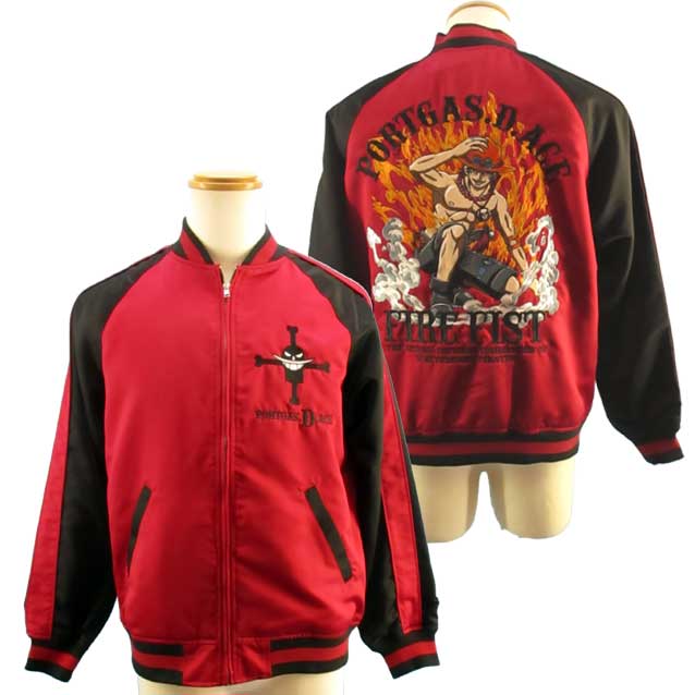【送料無料】ワンピース 火拳のエース★刺しゅう入りスカジャン/ポートガスDエース 刺繍/サテンスカジャン/裏張りジャンバー