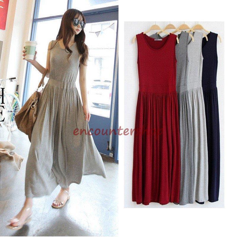 レディース マキシワンピース 夏 キャミワンピ コットン マキシ丈 チョッキワンピース ノースリーブ きれいめ 着痩せ ゆったり伸縮性あり柔らかい