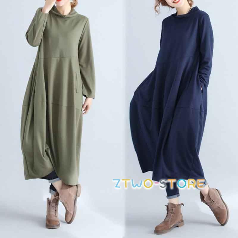 ワンピース レディース 大きいサイズ 体型カバー マキシワンピース ロングワンピース ワンピ コクーンワンピ ロングシャツ体型カバー オフネック ハイネック 秋