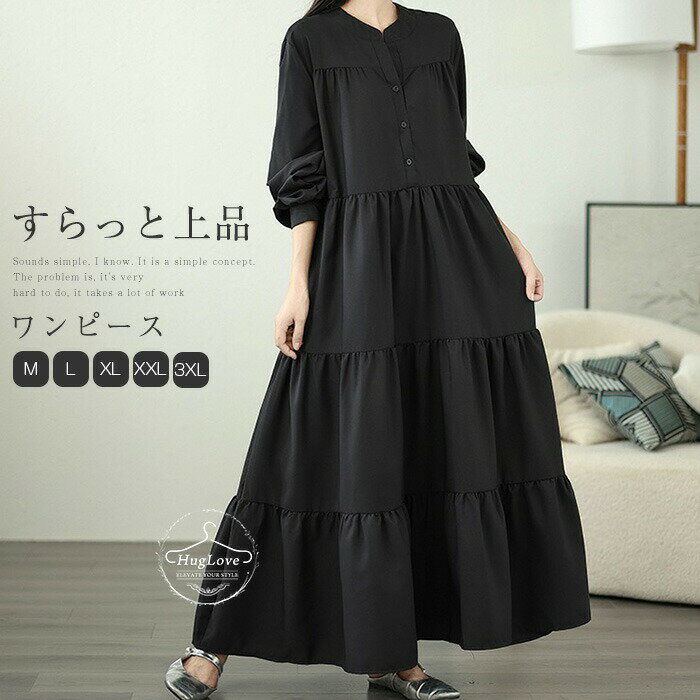 ロングワンピース ティアード レディース マキシワンピース マキシワンピ 長袖 ワンピース ロング丈 大きいサイズ 体型カバー ゆったり カジュアル 大人 着痩せ 30代 40..