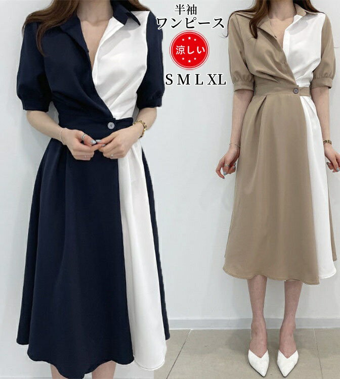 ワンピース レディース 夏 きれいめ マキシ丈ワンピース 韓国風 シフォン 半袖 ロング丈 オシャレ 結婚式ドレス 着痩せ 新作 上品 2色