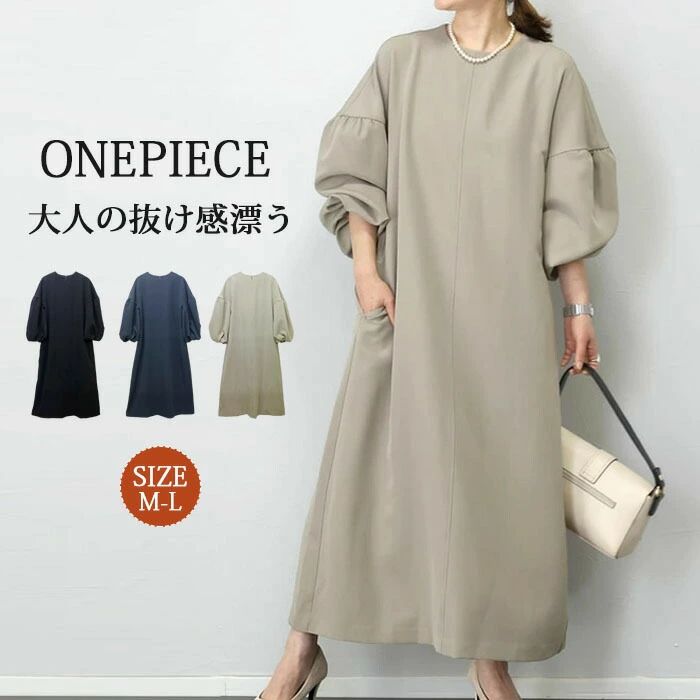 ロングワンピース レディース パーカー風ワンピース ドロップショルダー バルーンスリーブ ワンピ マキシワンピース 長袖 ロング丈 大きいサイズ 体型カバー ぽわん袖 ゆったり カジュアル 大人 着痩せ 30代 40代 50代 春 秋 冬 きれいめ