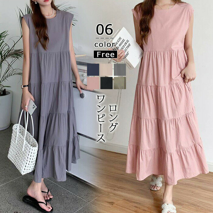 ワンピース ノースリーブ ティアードワンピース レディース マキシワンピース フレアワンピース ギャザー 大人可愛い ワンピ ゆったり 夏 ゆるシルエット ふんわり 体型..