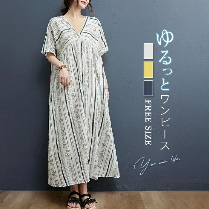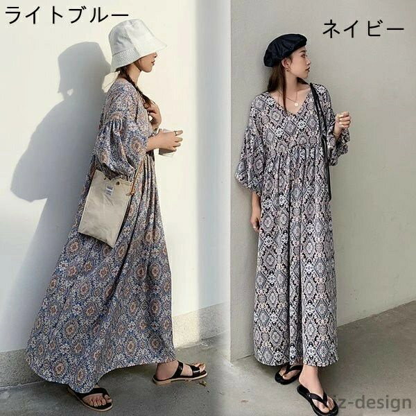 【送料無料】30代 韓国風 エスニック風 体型カバー マキシワンピース ひざ下 花柄ワンピース マキシワンピース Aライン キレイめ 夏 レディース ロングワンピース