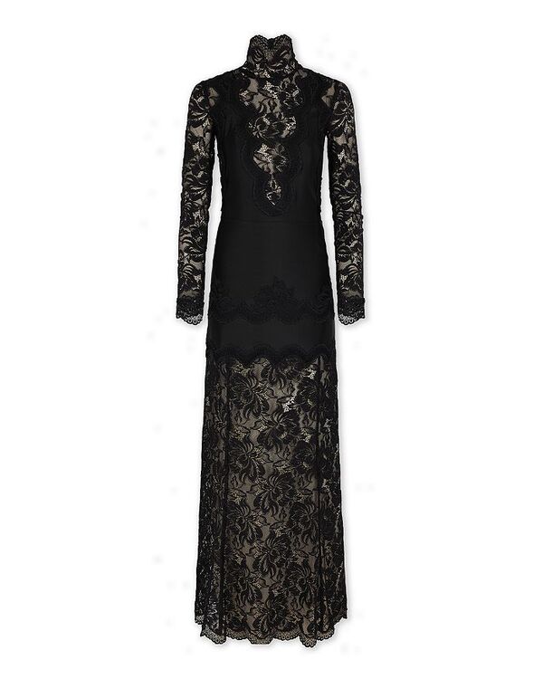 ラバンヌ レディース トップス ワンピース モックネック マキシワンピース フラワー柄 レース マキシ フラワー Rabanne Floral Lace Mock Neck Maxi Dress Black ブラック
