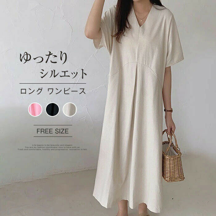 ワンピース レディース マキシワンピース リネンコットン ロングワンピース ふんわり 着痩せ 体型カバー カジュアル ドレス 大きいサイズ ビーチ リゾート