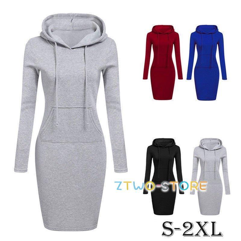 ワンピース マキシワンピース フレアワンピース ロングワンピース レディース チュニック 膝上丈 フード付き 前後差 スプライス 長袖 体型カバー ゆったり 無地