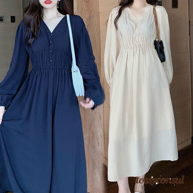 ワンピース レディース 春秋 ロングワンピース 通勤 OL 韓国風ワンピース Vネック 無地 スリット マキシワンピース プレゼント ギフト 新生活