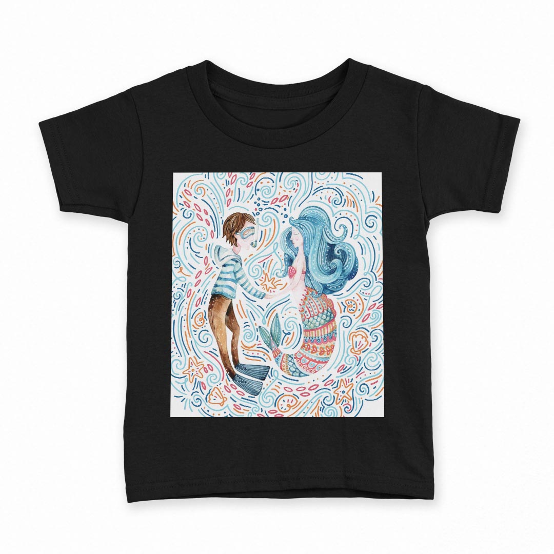 tシャツ キッズ 半袖 黒地 ブラック デザイン 90 100 110 120 130 140 150 160 Tシャツ ティーシャツ T shirt 014033 人魚 海 カラフル
