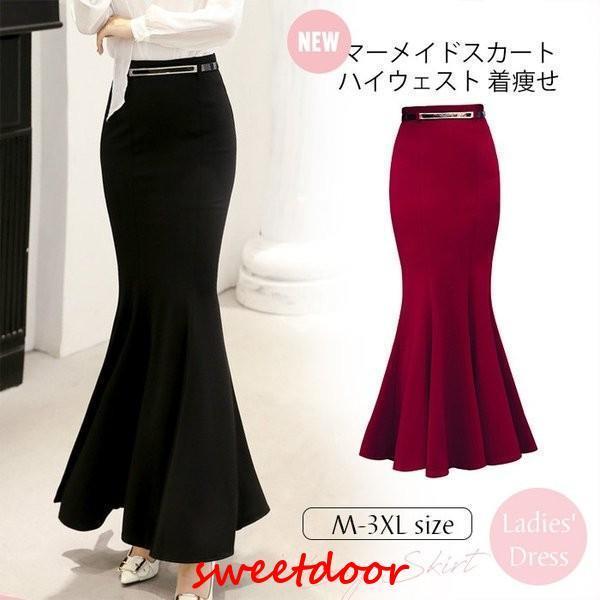 スカート ロング レディース 秋冬 マーメイドスカート ロングスカート ボトムス タイトスカート 黒 赤 ハイウエスト 大きいサイズ 無地 着痩せ 30代 40代 50代