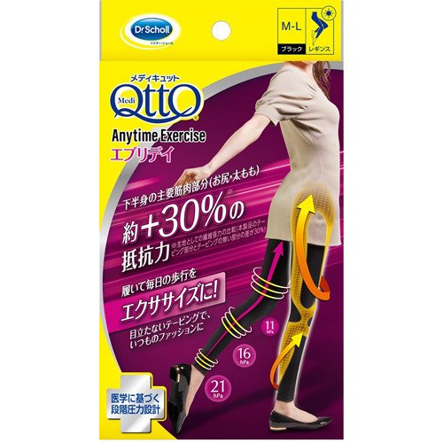 ★メール便発送・送料無料(箱出し)★メディキュット エニタイムエクササイズ エブリデイ レギンス(M−L・ブラック)【ドクター・ショール 】