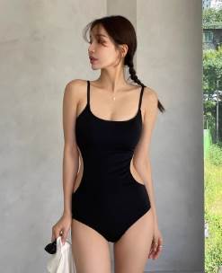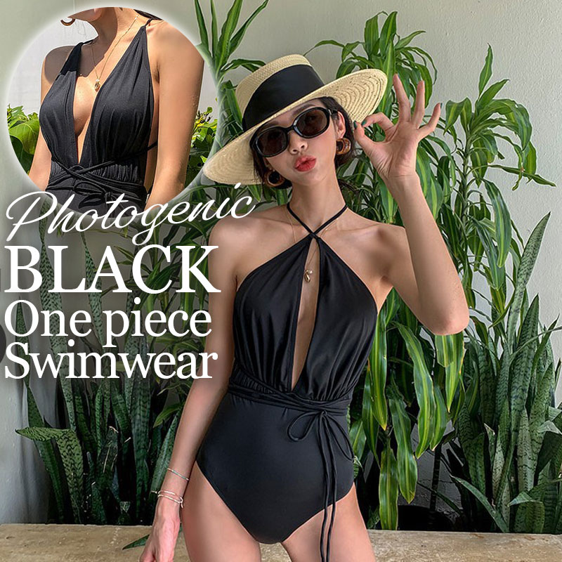 20代30代水着黒 バックシャン着やせ ワンピ水着背中あき レディースモノキニ韓国風