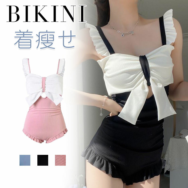 【全店舗p10!】水着 レディース 体型カバー ビキニ タンキニ ワンピース モノキニ リボン 無地 軽量 水着セット リブニット風 体型カバー ハイウエスト レディース ママ..