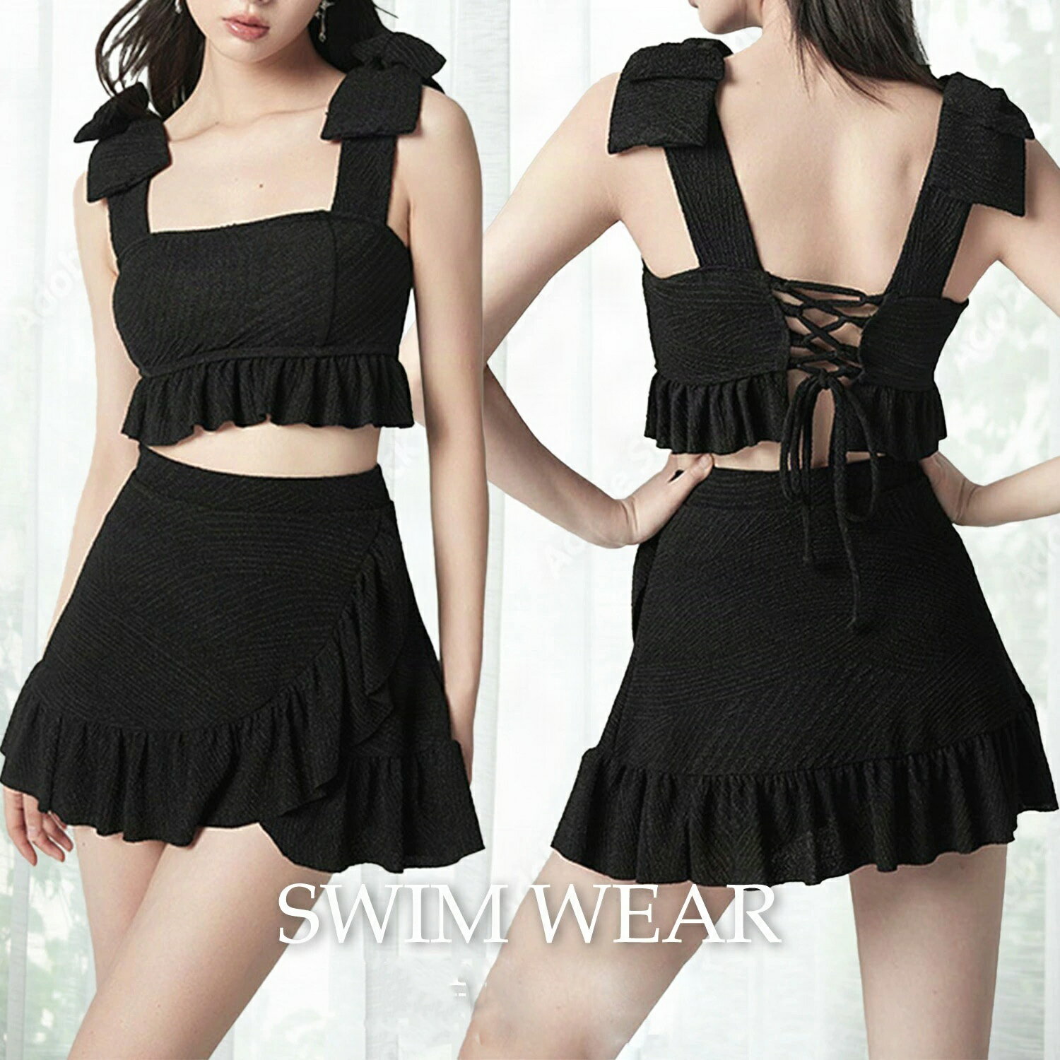 かわいい 大人 洋服みたい 盛れる レディース 女性用 大 水着 スイムウェア 黒 ブラック モノキニ ワンピース 着痩せ 細見え スタイルアップ セクシー 大人 上品 温泉 リ..