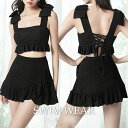 【OUTLET!クーポンで2,070円】 水着 ワンピース水着 体型カバー モノキニ ビキニ レディース フリル クロス セクシー 胸元 ノースリーブ ショートパンツ セット スイム..