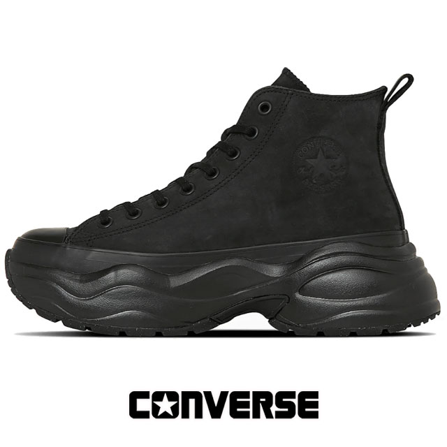 コンバース ハイカット スニーカー 厚底 レザー オールスター (R) サージトレーナー HI レディース 黒 靴 カジュアル 31313140 ブラックモノクローム 5cmヒール レース..