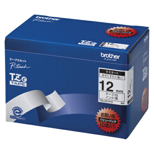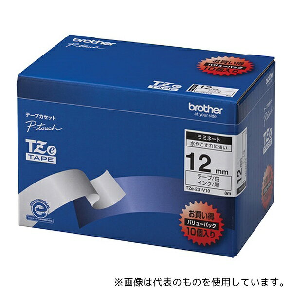 【BROTHER ブラザー工業】 事務用品 文具 プリンター機器 ブラザー工業 TZeテープ ラミネートテープ (白地 / 黒字) 12mm 10本パック TZe-231V10 家電 キッチン家電 生..