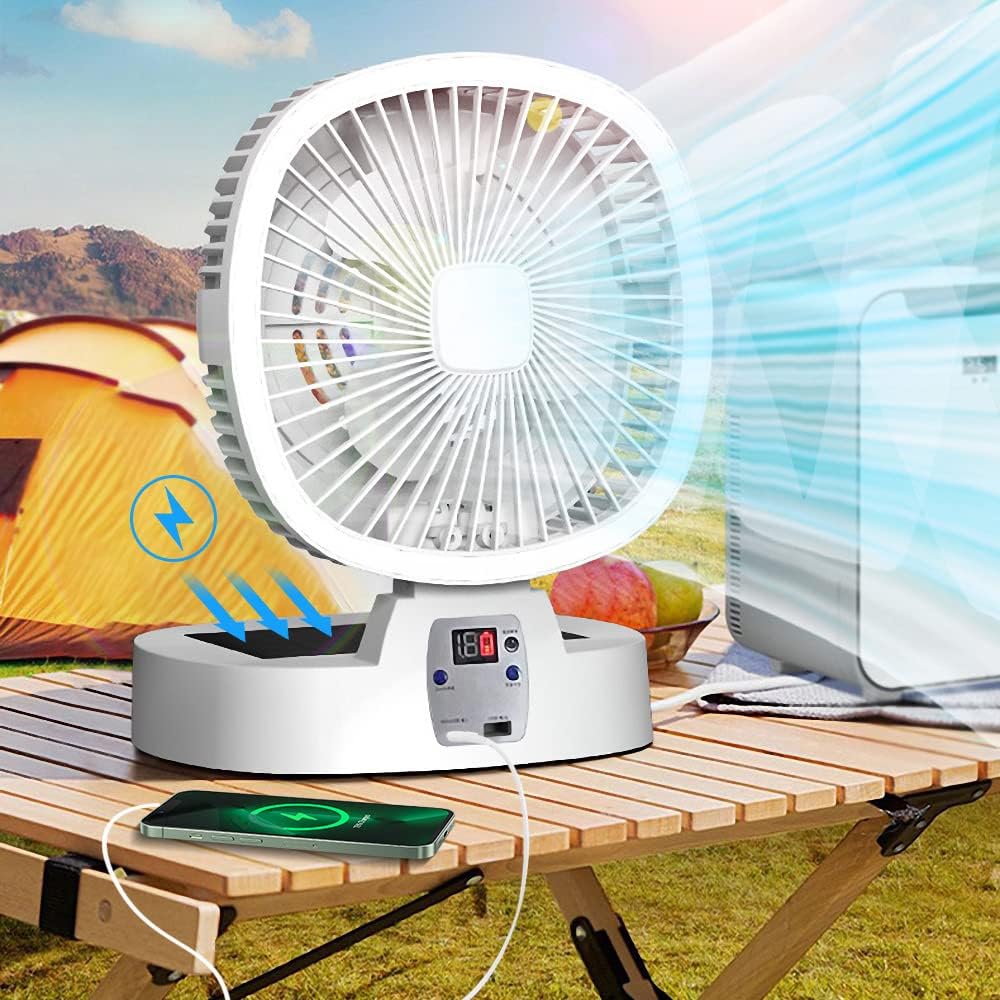 【2023新版】ソーラー充電 アウトドア扇風機 キャンプ扇風機 5段階風量 調光3段階LEDライト 小型ソーラーパネル付き 5000mAh電池 USB&Type-Cポート コンパクト収納 ..