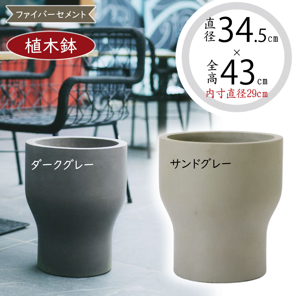 植木鉢 プランター おしゃれ 鉢 器 ポット 観葉鉢 インテリア 人気 おすすめ ベトン BETON アーバンで洗練された雰囲気を纏う、滑らかなコンクリート調仕立ての植木鉢です。 内側に入るワイドリムは優雅な印象を与えます。 お部屋 室内 屋内 フロアはもちろん、屋外 野外 お庭 テラス バルコニー ベランダ ファサード 屋上 にもおすすめです。 ●2種類の色のどちらか1つの色をお選びください。 (サンドグレー、ダークグレー) 外寸:直径34.5cm×全高43cm(底面:直径25cm) 内寸:直径29cm×全高42cm(底面:直径20cm) 重量:11kg 容量:25リットル 材質:ファイバーセメント 底穴:あり ・セメント製品の特性として環境によりクラック、色あせ等の変化が発生します。 ・セメント製品独特の現象として環境により白い物質(炭酸カルシウム等)が表面に浮く白華現象(エフロレッセンス)が起こることがあります。 ・サイズは多少前後する場合がございます。 ・..