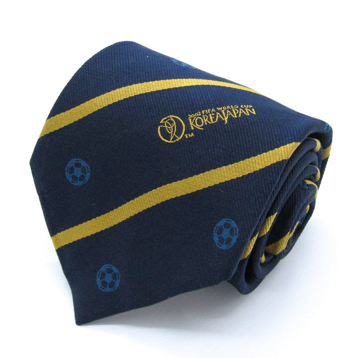 【全品39%OFFクーポン配布中】FIFA ワールドカップ ブランド ネクタイ 2002 KOREA/JAPAN 公式 サッカーボール シルク 日本製 PO メンズ ネイビー 【中古】