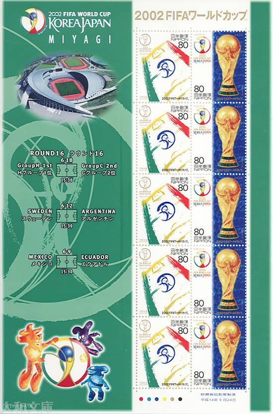 【記念切手】 2002FIFAワールドカップ 「宮城会場版」 80円切手シート 平成14年(2002年)発行 【サッカー】