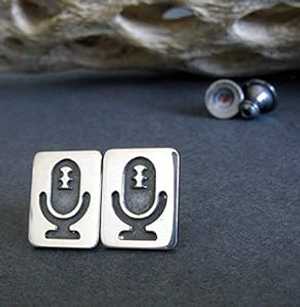 ヴィンテージスタイルのマイクスターリングシルバースタッドピアス。DJボーカリストのジュエリー。アメリカで手作りされています。 Poseidon's Booty Vintage style..