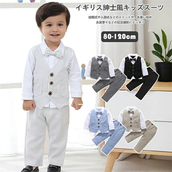 フォーマル キッズ ベビー スーツ 重ね着風 フェイクレイヤード 赤ちゃん 誕生日 男の子 新生児服 蝶ネクタイ 記念撮影 長袖 卒業式 七五三 お宮参り お食い初め 出産祝..