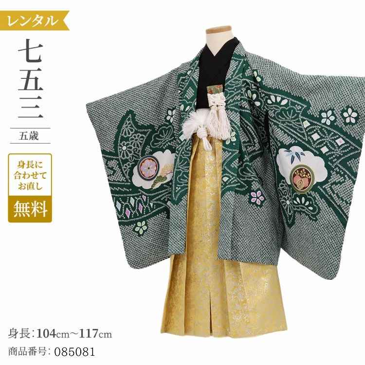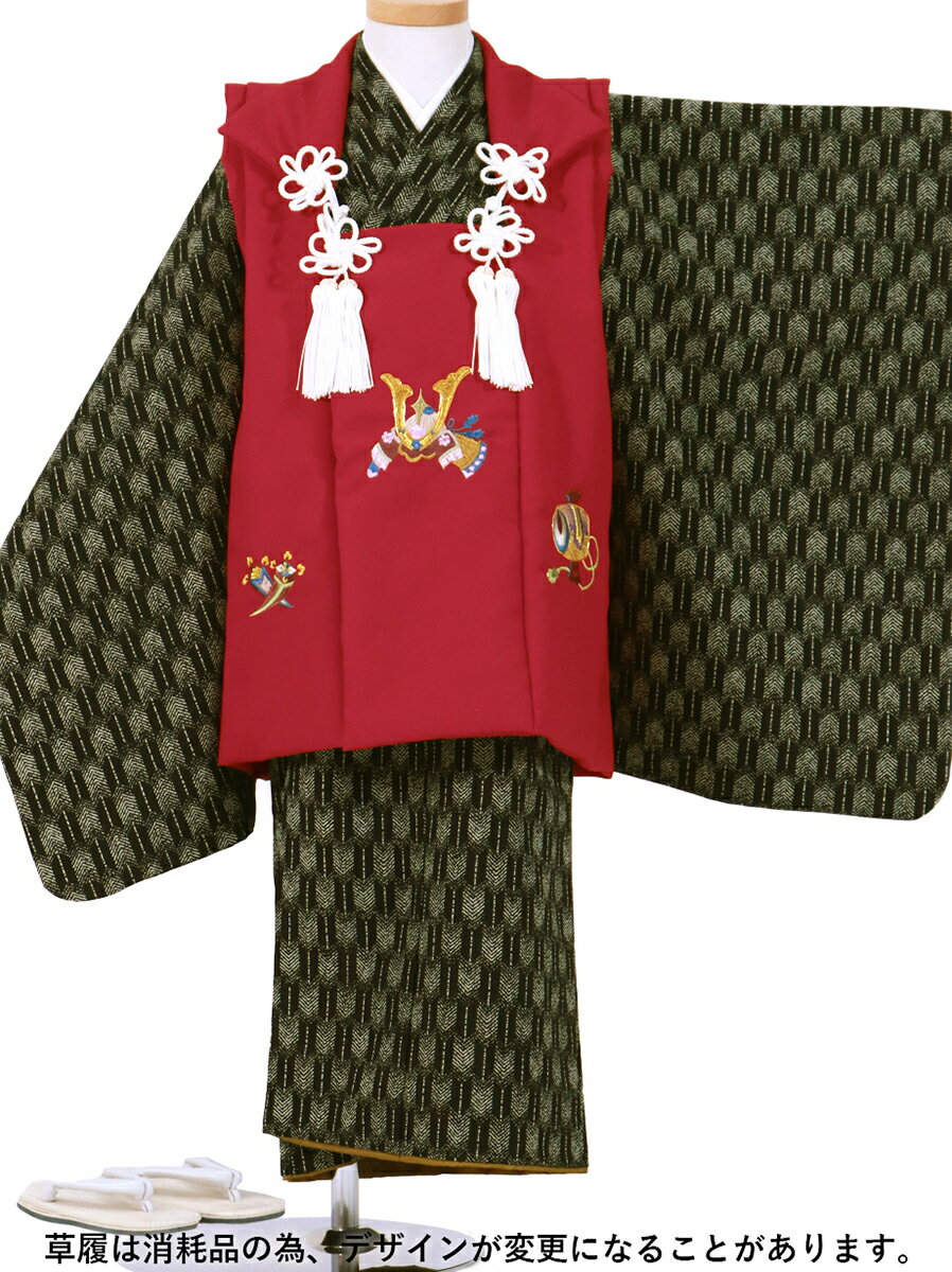 七五三 着物 5歳 フルセット レンタル 袴 七五三 5歳 フルセット 緑疋田兜 【レンタル】 七五三 男の子 着物 レトロ 着物 男の子 七五三 おしゃれ 七五三 レンタル 小さ..
