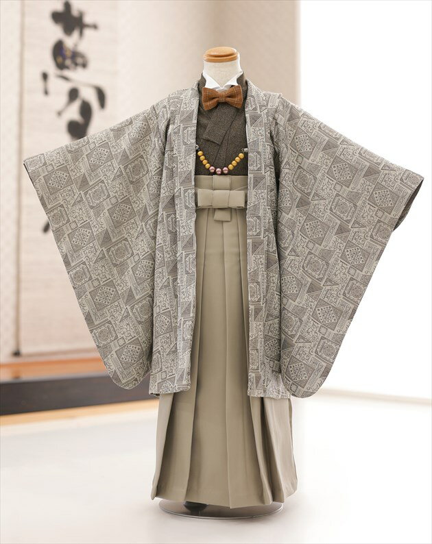 七五三 レンタル 5歳 男の子 かんたん 簡単着付 フルセット七五三 5歳 男の子 レンタル フルセット 袴 子供袴レンタル 袴サイズ 110cm 115cm 120cm 送料無料 グレー 華王..