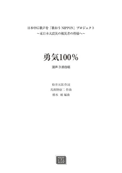楽譜 【受注生産】 勇気100%(女声3部合唱)(日本中に歌声を「歌おうNIPPON」プロジェクト〜東日本大震災の被災者の皆様へ〜)(3554/kawai o・d・p score(納期に約2週間〜最..