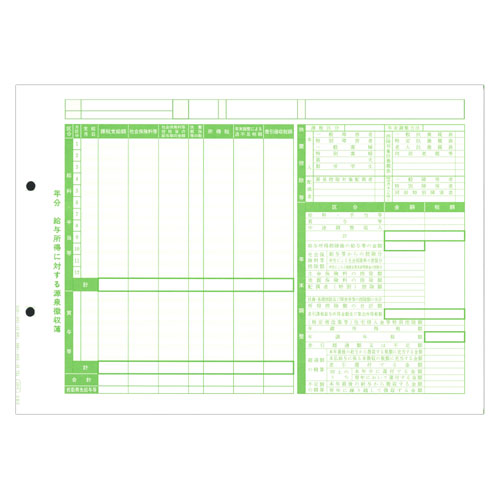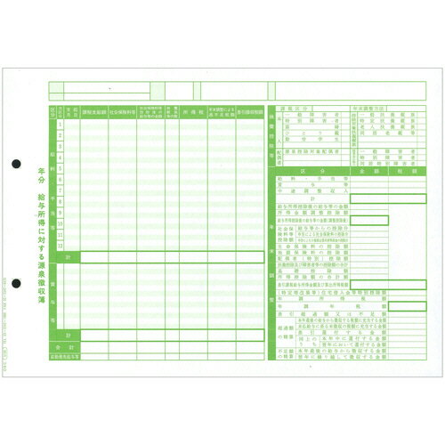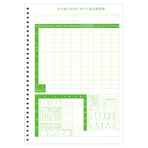 OBC 5169 単票源泉徴収簿(横型)■単票(レーザープリンタ用)■ サイズ:A4ヨコ(297mm×210mm) 入数:1箱/500枚入 刷色:グリーン