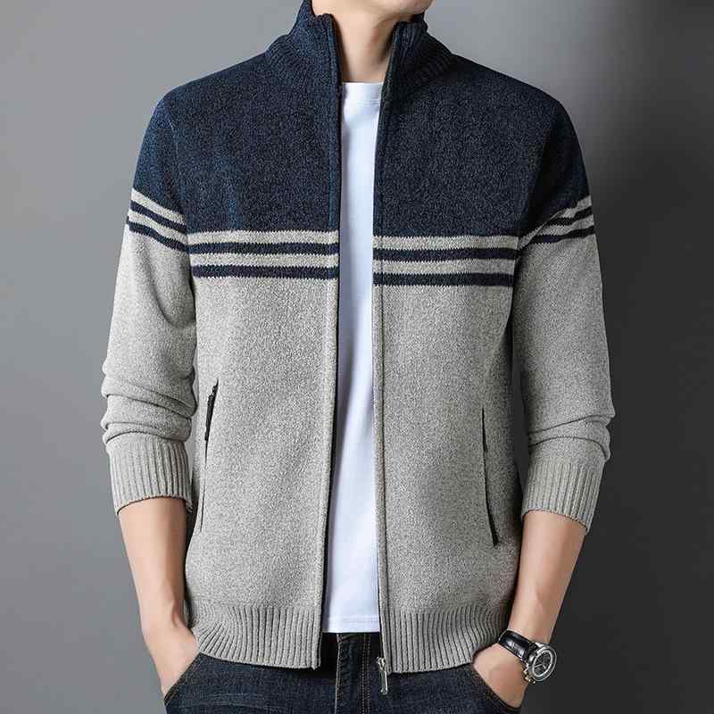 ニット メンズ カーディガン ジャケット 韓国 アウター 大きいサイズ 厚手 Vネック リブ裾 ポリエステル混紡 春秋 普段使い 部屋着