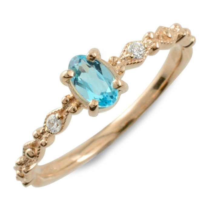 【スーパーセール10%OFF】 k10 ブルートパーズ オーバル ダイヤモンド リング 指輪 ゴールド ピンキーリング ピンクゴールド クラシカル 10k 10金 華奢 レディース アン..