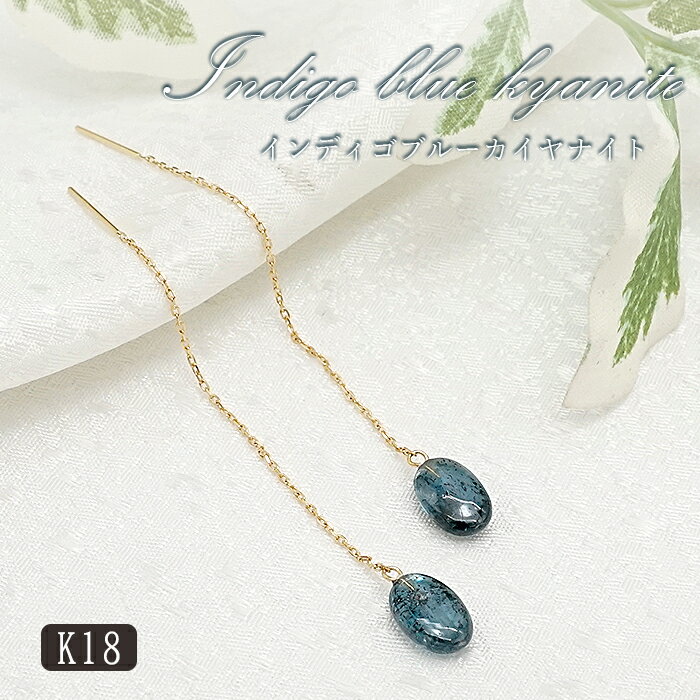【楽天スーパーSALE 30%OFF】 【一点もの】 インディゴブルーカイヤナイト アメリカンピアス タンザニア産 K18 日本製 ピアス チェーンピアス ゴールド カイヤナイト 天..