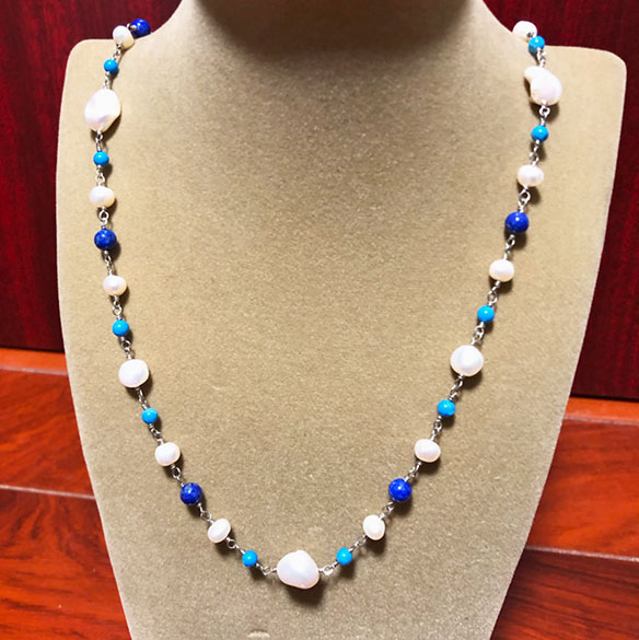送料無料!ラッピング無料!HAGIWARA DESIGN『パールラピスハウライトライトネックレス』【楽ギフ_包装】