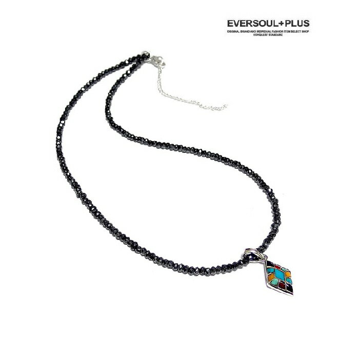 ネックレス メンズ 送料無料【EVERSOUL PLUS】SILVER925ブラックスピネル(黒尖晶石)シルバーコーティングネックレス