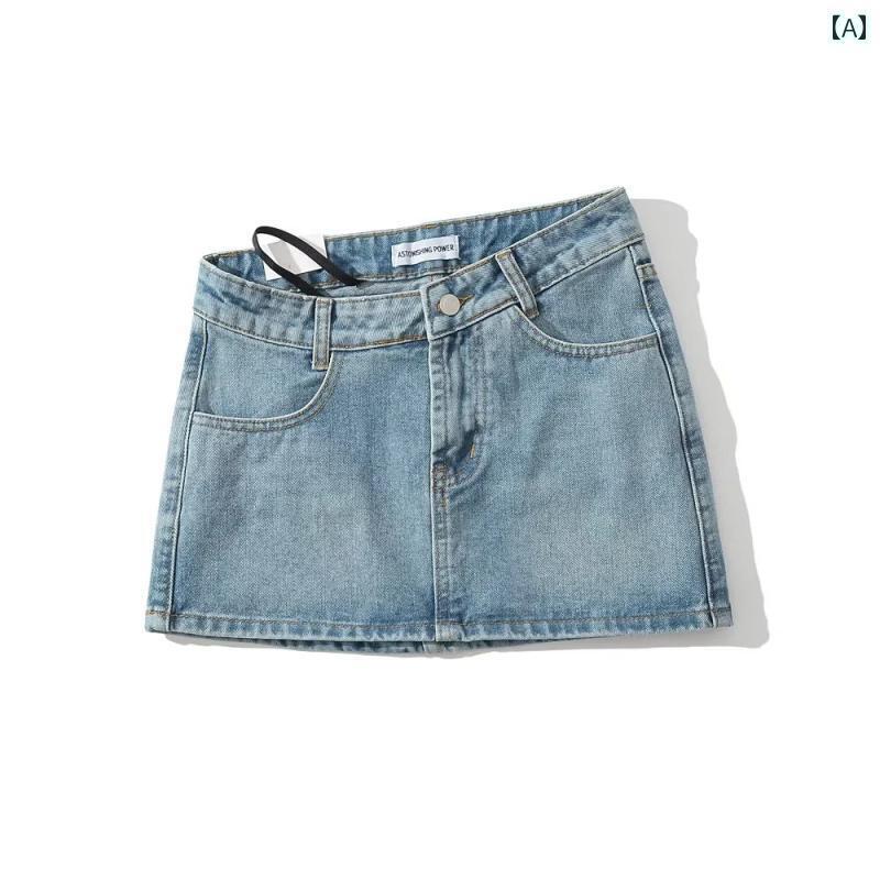 レディース スカート ショートパンツ と アメリカ ホット ガール デニム ショート スカート 女性 吊り ロープ ローウエスト非 対称 ヒップ デニムスカート