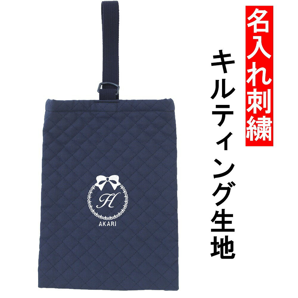 シューズケース 幼稚園 小学校 入園入学準備【リボン キルティング 紺】上靴入れ 刺繍 イニシャル 幼稚園 保育園 小学校低学年にピッタリ!上履き袋 体育館シューズ入れ ..