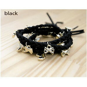 スエードリボン・ブラック ブレスレット スエードで編まれた個性的な中にもかわいらしさのあるブレスレットです。 韓国の人気女性ユニット少女時代メンバーたちもお気に入り! ハンドメイド商品のため、形状や色に違いがある場合がございます。予めご了承下さい。 材質 :brass、suede サイズ:フリー