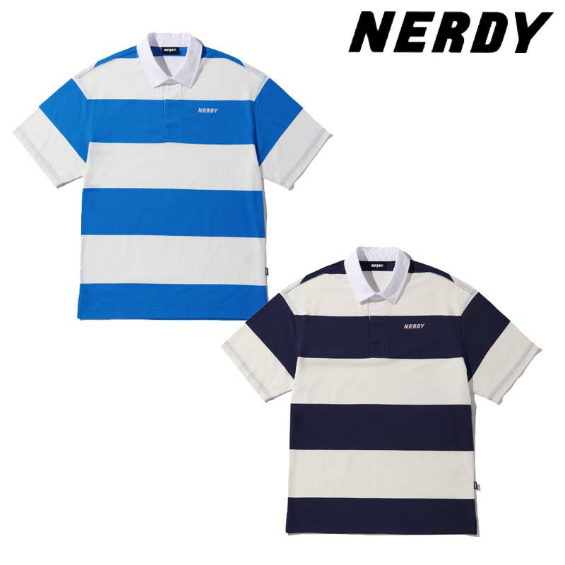 NERDY ノルディ HE&SHE [送料無料] 2023SS ストライプラグビー半袖Tシャツ STRIPE RUGBY SHORT SLEEVE T カットソー ポロシャツ プルオーバー ユニセックス 韓国ブラ..