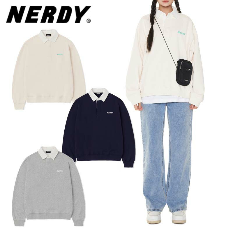 NERDY ノルディ HE&SHE [送料無料] 2023SS ラグビースウェットシャツ RUGBY SWEAT SHIRT トレーナー MTM プルオーバー ユニセックス 韓国ブランド 韓国ファッション ..