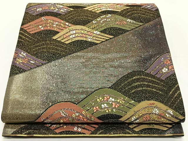 平和屋着物◎六通柄袋帯 源氏車文 金銀糸 正絹 逸品 BAAW1222mz