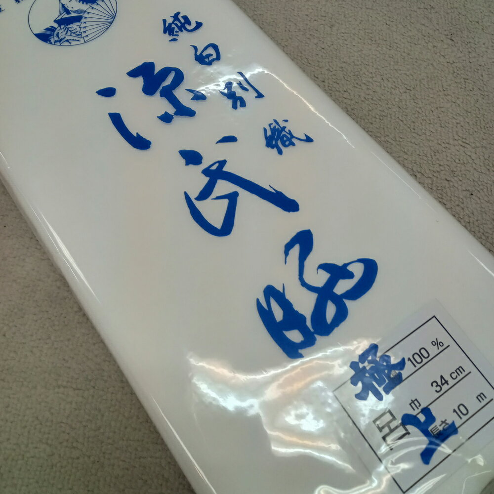 商品説明素材源氏晒 呂印綿100% サイズ巾約34cm×長さ約10m(特徴など)晒(さらし)は、着付けの補正、襦袢の身頃、祭、災害時の包帯、おむつ、多用途に使える布です。日本製 注意晒(さらし) 源氏晒 呂印 綿100% 10m×34cm巾